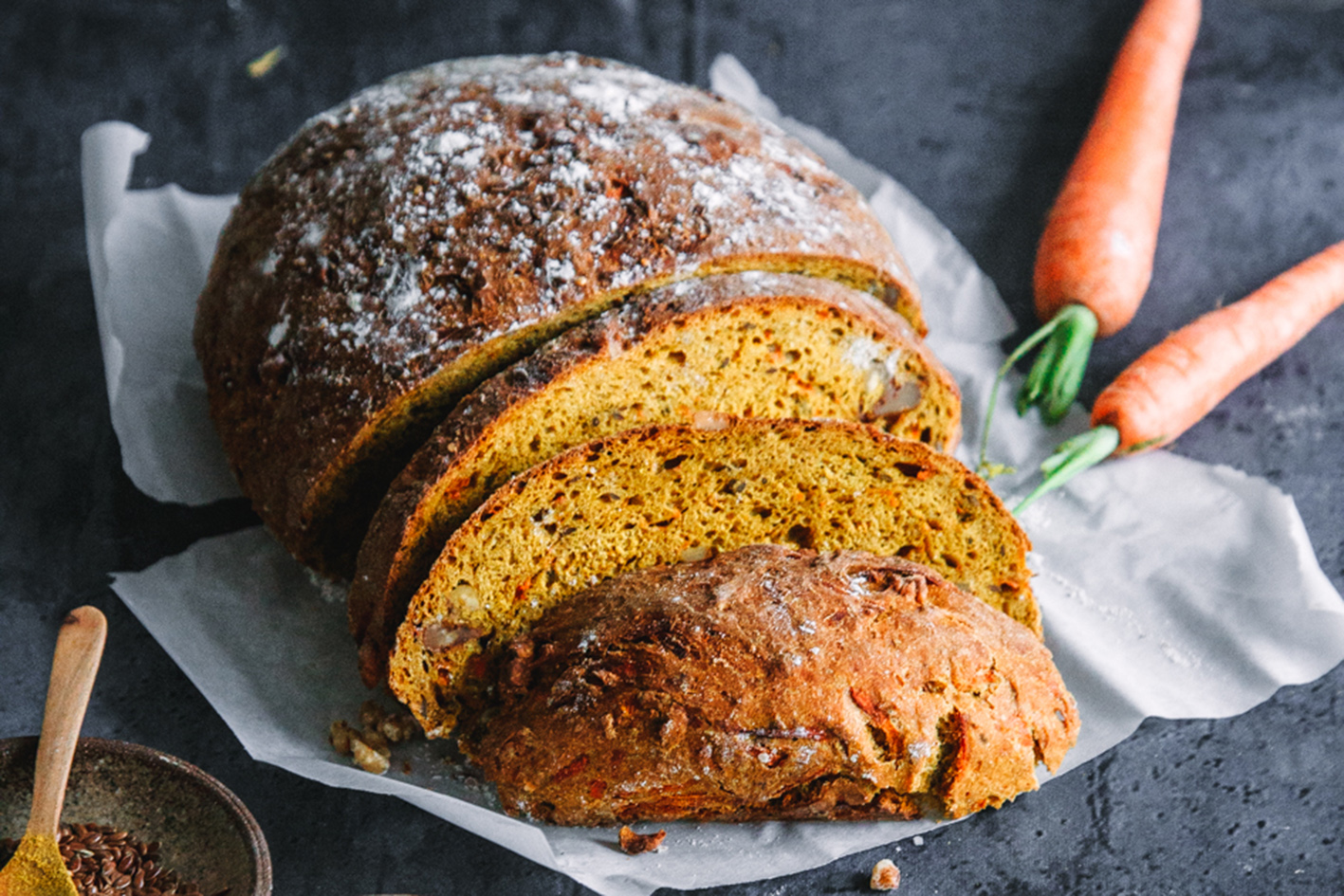 Eine knusprige Kruste, lockerer Teig mit würzigem Curry, saftigen Möhren und Walnüssen, das ganze frisch duftend aus dem Ofen… Dieses Curry-Möhrenbrot ist wirklich ein Traum!